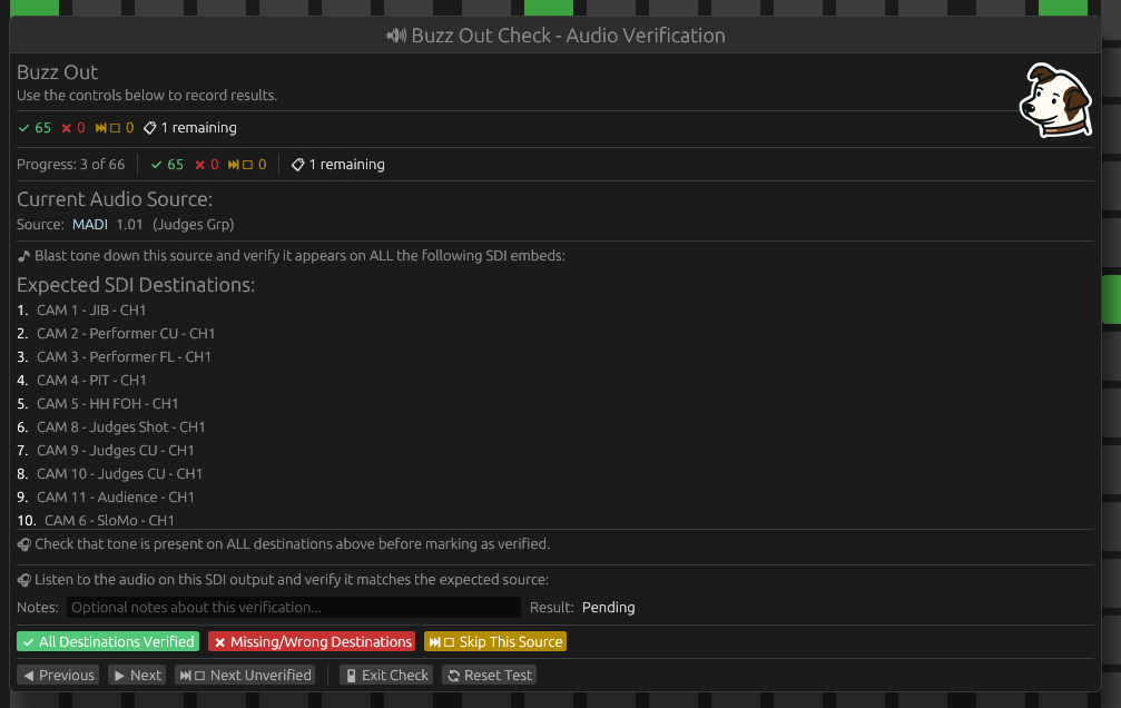Simple, Methodical checking of audio and logging of completed checks. No more cross referencing!